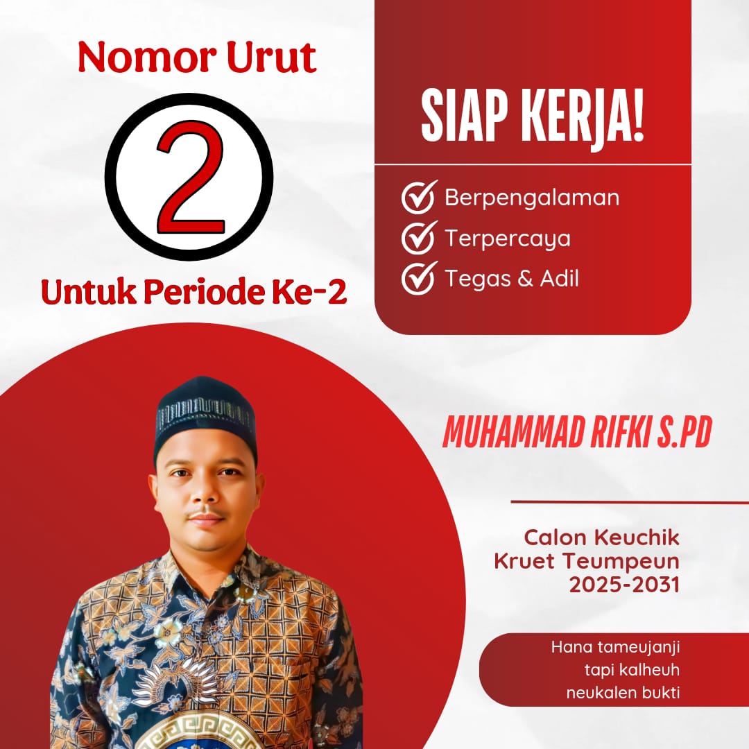 “Alhamdulillah masih diberi kepercayaan oleh masyarakat untuk memimpin Kruet Teumpeun. Semoga Amanah ini tetap terjaga dengan baik,” ujar Muhammad Rifki.