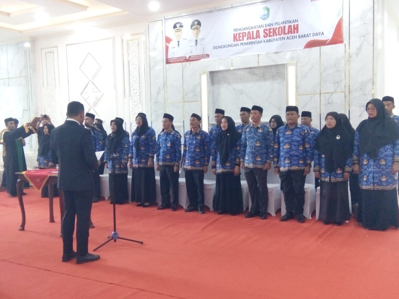 Pelantikan dan Pengambilan Sumpah Jabatan 24 orang Kepala Sekolah, SMP, SD hingga TK tersebut berlangsung di ruang utama kantor Bupati Abdya, Jalan Bukit Hijau, kompleks Perkantoran Keude Paya, Kamis (29/01/2026).