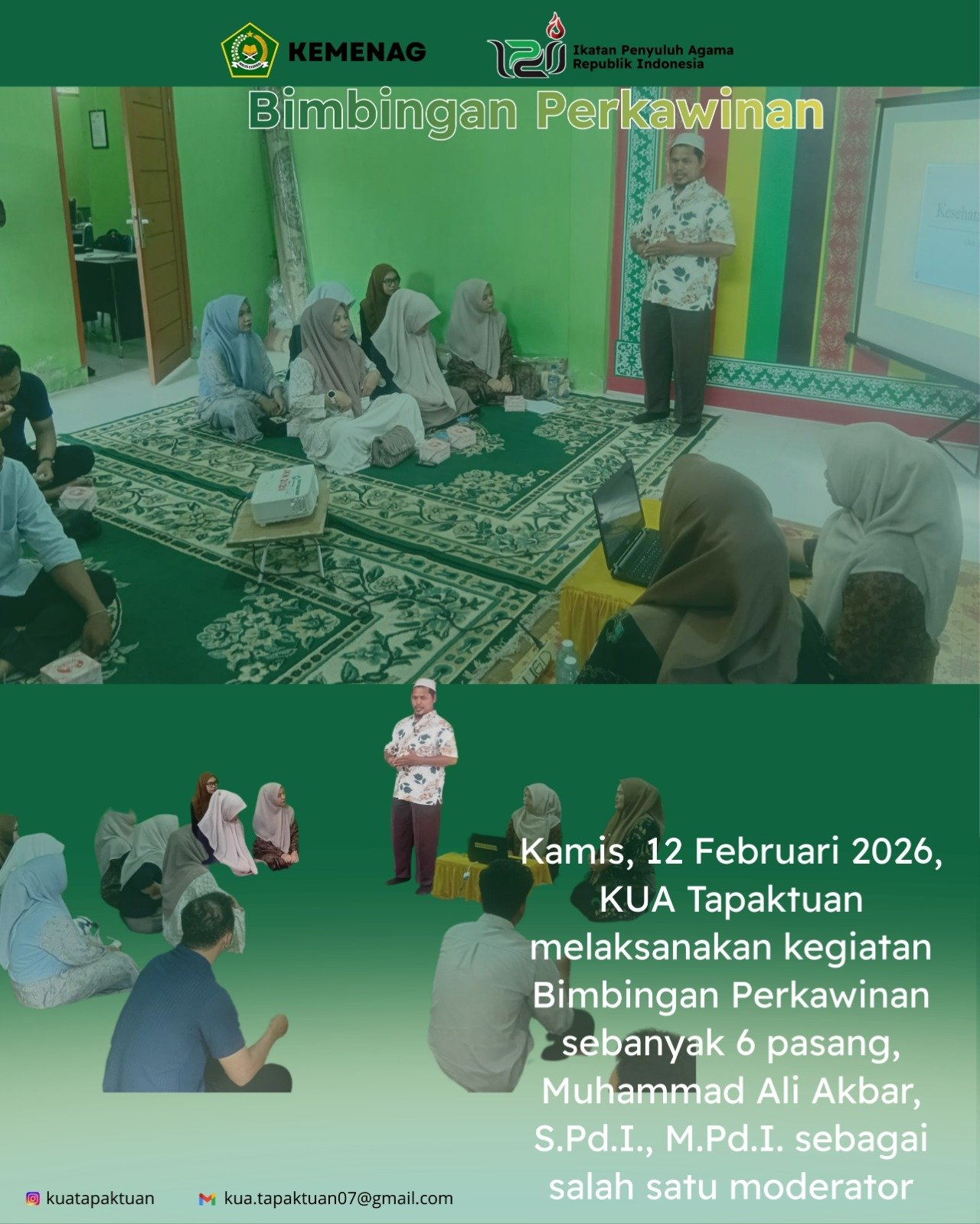 Bimbingan Perkawinan yang dilaksanakan di KUA Tapaktuan pada Kamis, 12 Februari 2026, dengan jumlah peserta 6 pasang calon pengantin, merupakan langkah strategis dan visioner dalam menyiapkan generasi keluarga Muslim yang kuat. Bimbingan ini bukan sekadar agenda administratif sebelum akad nikah, tetapi ikhtiar serius negara dan agama untuk mempersiapkan calon suami dan istri menghadapi realitas kehidupan rumah tangga yang kompleks.