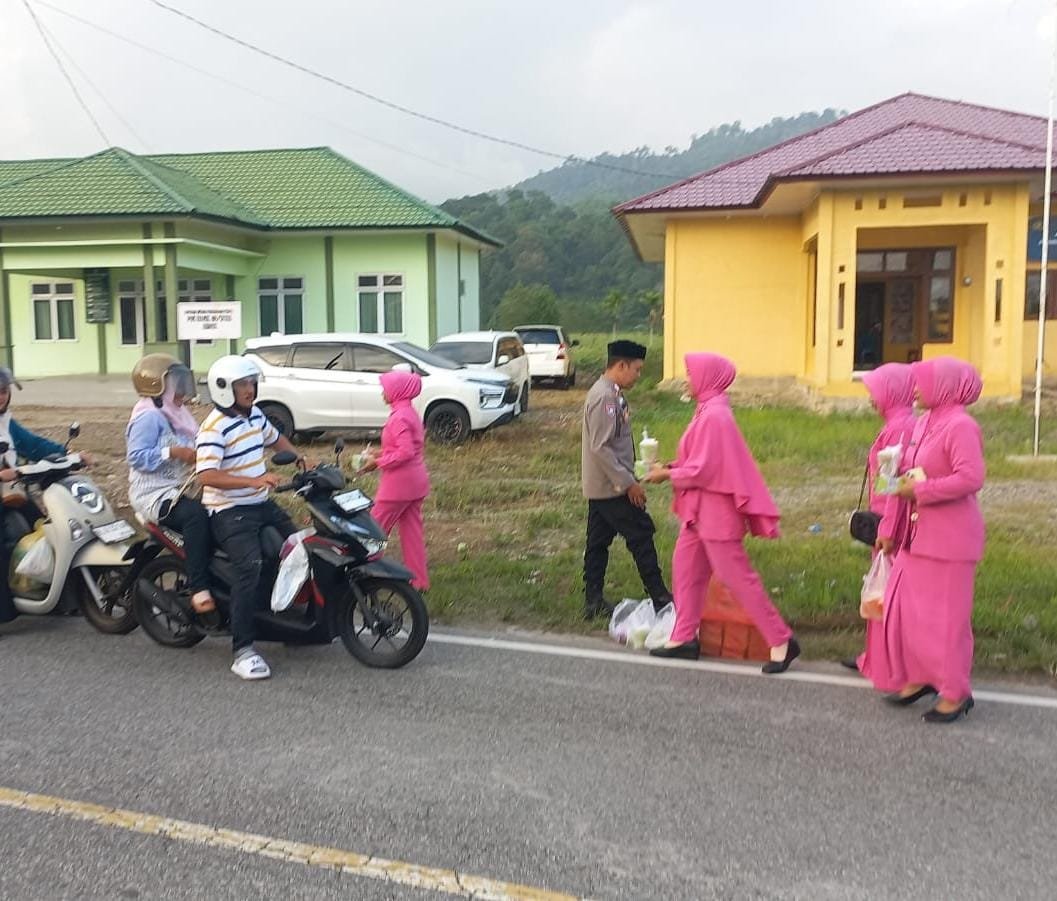 BLANGPIDIE – Dalam rangka menyemarakkan bulan Suci Ramadhan 1447 H/2026 M, Kapolsubsektor dan jajaran membagikan puluhan paket takjil buka puasa kepada pengguna jalan Nasional dan masyarakat sekitar Gampong Lhang, Minggu (08/03/2026) sekitar pukul ukul 17.20 Wib hingga dengan selesai.