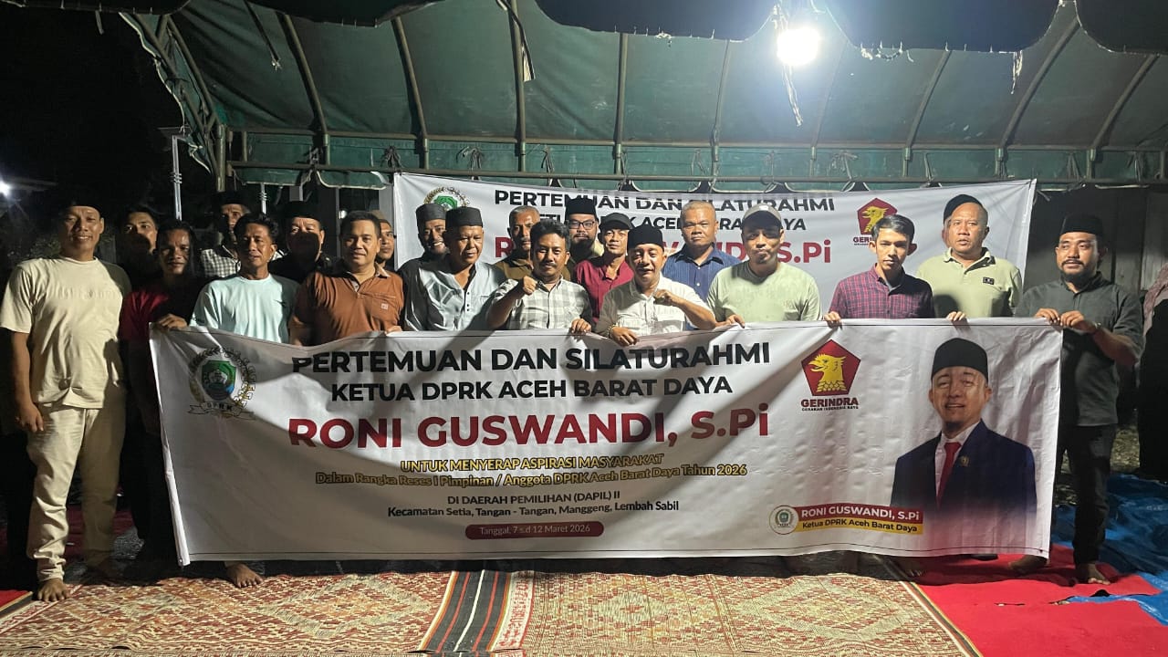 BLANGPIDIE – Ketua Dewan Perwakilan Rakyat Kabupaten (DPRK) Aceh Barat Daya (Abdya), Roni Guswandi, S. Pi melaksanakan Reses I tahun 2026 di Gampong Padang Kecamatan Manggeng, Kamis (12/03/2026).