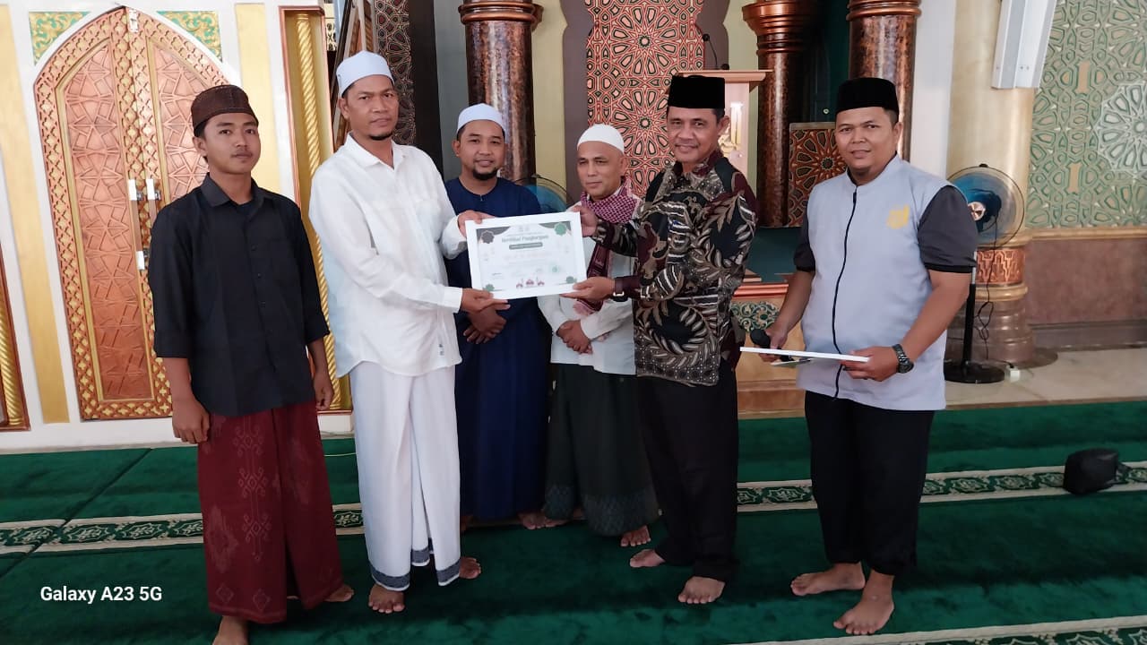 Meulaboh – Kepala Dinas Syariat Islam Aceh Barat Dr. Husensah, M.Pd. resmi menutup Daurah Tajwid dan Bahasa Arab Masjid Agung, pada Senin sore 16 Maret 2026, menjelang buka puasa bersama malam 27 Ramadhan 1447 H, di masjid Agung Baitul Ma’mur Aceh Barat.