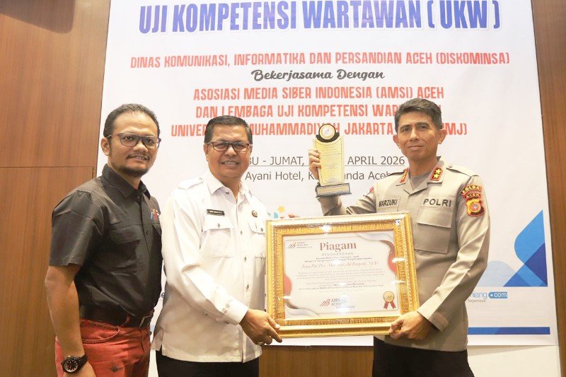 BANDA ACEH — Kapolda Aceh menegaskan pentingnya sinergi antara Polri dan insan pers dalam menjaga stabilitas keamanan dan ketertiban masyarakat (kamtibmas), saat menjadi narasumber pada kegiatan Uji Kompetensi Wartawan (UKW) yang dirangkai dengan Seminar Nasional di Ayani Hotel Peunayong, Rabu (15/4/2026).