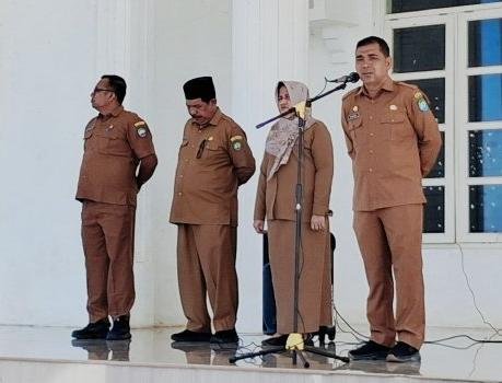 BLANGPIDIE — Pelaksana Tugas (Plt) Sekretaris Daerah (Sekda) Kabupaten Aceh Barat Daya (Abdya) Amrizal, S. Sos memimpin apel rutinitas Senin di Dinas Pendidikan, Senin (20/04/2026).