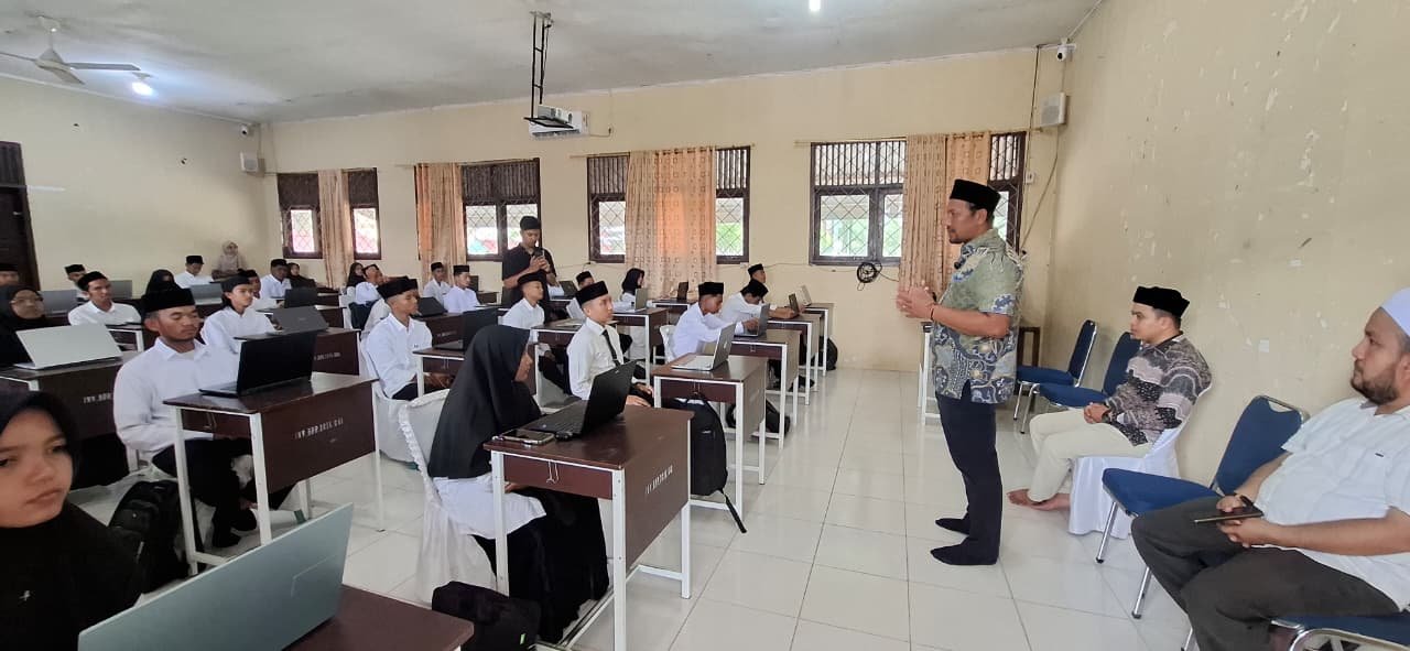 Kegiatan yang berlangsung online itu dilaksanakan di ruang Multimedia pesantren setempat. Peserta diberikan waktu 120 menit untuk menyelesaikan 70 butir soal choise.
