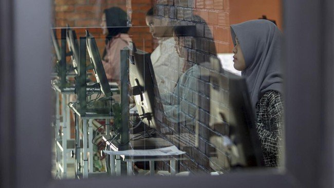 Salah satu peserta Ujian Tulis Berbasis Komputer (UTBK) Universitas Diponegoro (Undip) berinisial M, membuat geger karena menanam alat bantu dengar di dalam telinga. Peserta tersebut kemudian diserahkan ke Polsek Tembalang, Semarang, Jawa Tengah. Ilustrasi (ANTARA FOTO/YULIUS SATRIA WIJAYA)