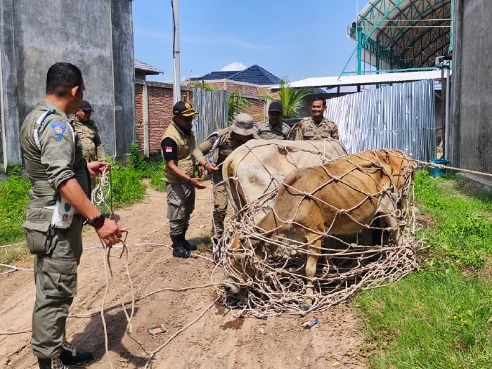 Satpol PP dan WH Aceh Besar Amankan Lima Sapi Berkeliaran di Ingin Jaya