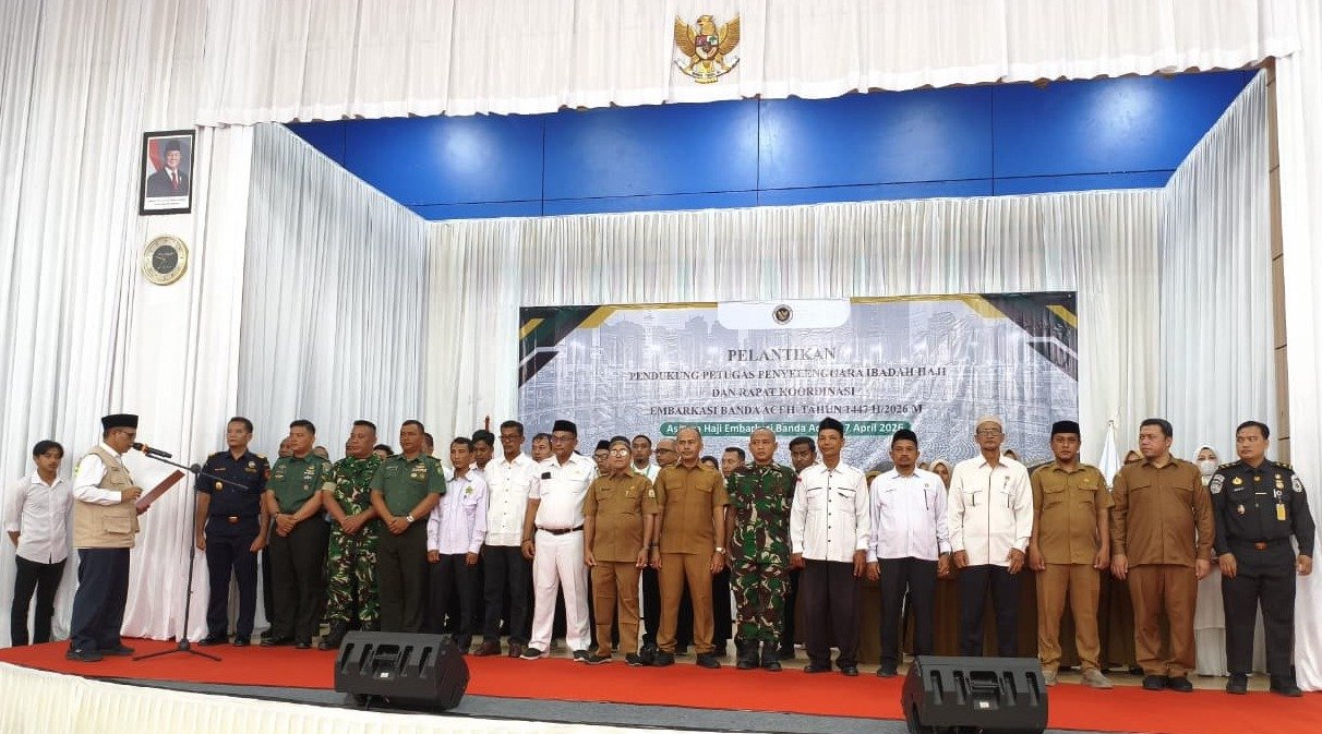 Banda Aceh – Ketua Petugas Penyelenggara Ibadah Haji (PPIH) Embarkasi Aceh, Arijal, melantik 72 Pendukung PPIH Embarkasi Aceh Tahun 1447 H/2026 di Aula Asrama Haji Aceh, Senin (27/4/2026).